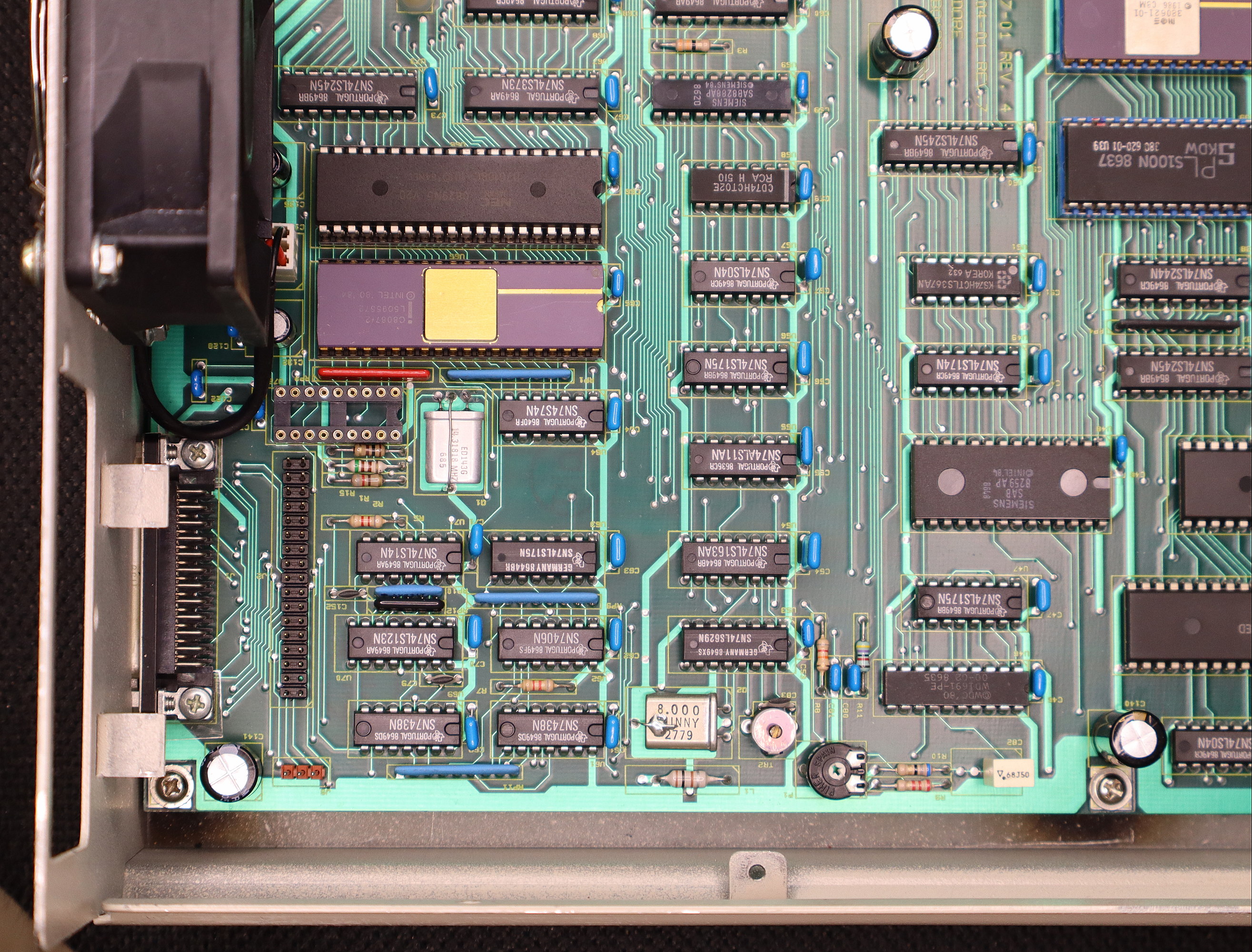 As originally intended, fitting a PC-Sprint required the clock generator chip U72, an 8284A to be removed from the PC's motherboard and replaced by a socket as seen below.